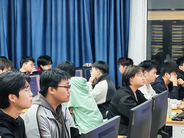 随后,刘修阳老师为学生们讲授了首堂专业课程。他结合生动的工程案例和实践操作,以深入浅出的方式阐述了网络技术的理论基础及其在实践中的应用。学生们全神贯注地聆听,不仅持续投入课程学习并与老师进行互动,还共同参与了实践操作和模拟演练。